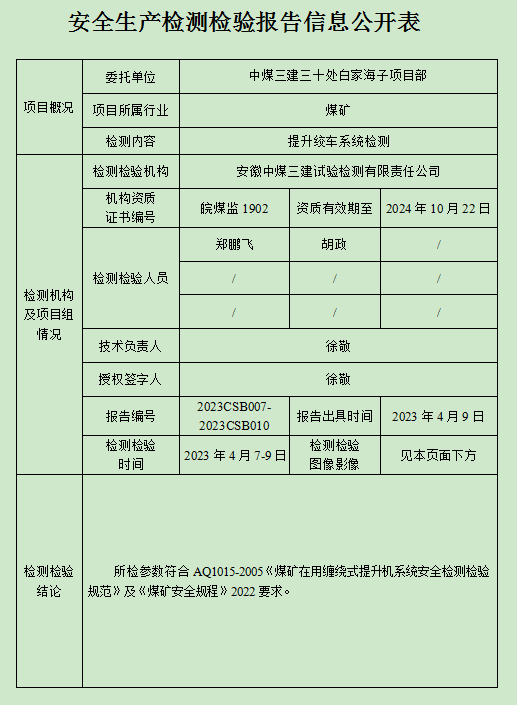 【三十处白家海子项目部】提升机系统检测