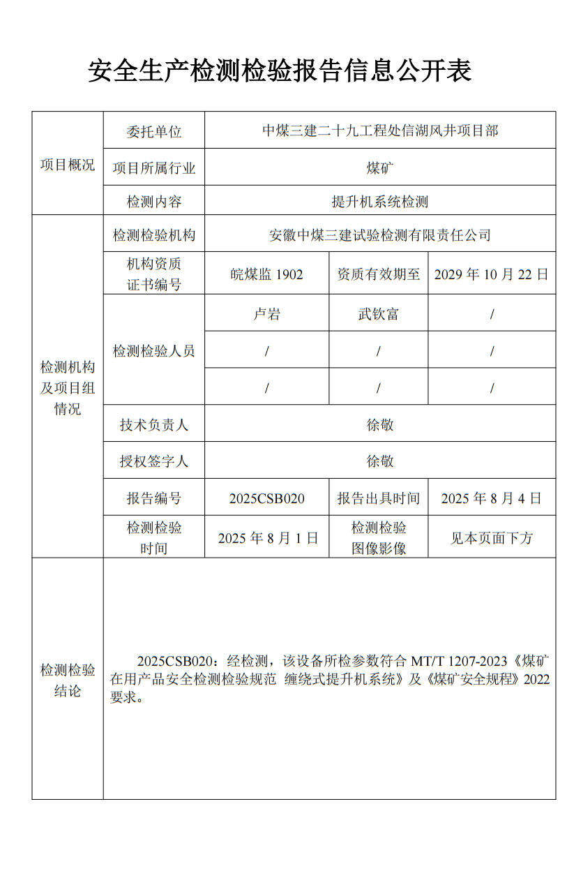 所检参数符合MT/T 1207-2023《煤矿在用产品安全检测检验规范 缠绕式提升机系统》及《煤矿安全规程》2022要求。