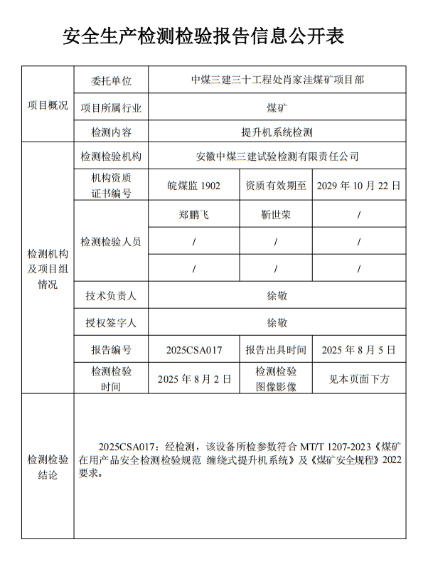 所检参数符合MT/T 1207-2023《煤矿在用产品安全检测检验规范 缠绕式提升机系统》及《煤矿安全规程》2022要求。