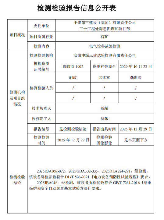 安徽中煤三建试验检测有限责任公司