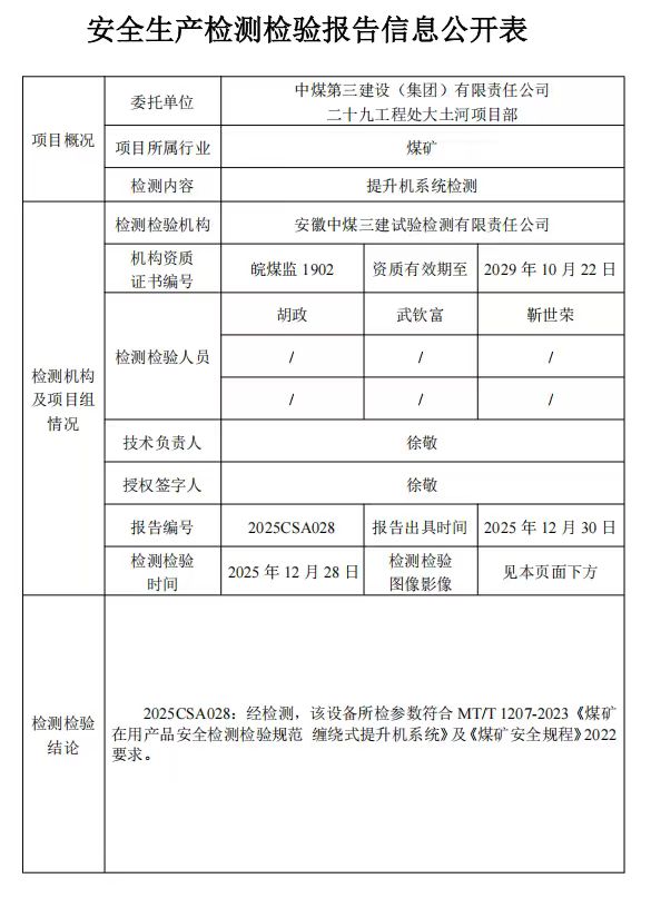 所检参数符合MT/T 1207-2023《煤矿在用产品安全检测检验规范 缠绕式提升机系统》及《煤矿安全规程》2022要求。
